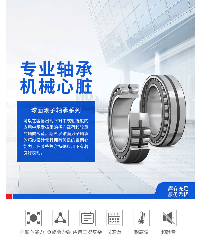 對(duì)稱滾子的自我調(diào)整,提供最佳的負(fù)載分布沿滾子長(zhǎng)度。這使強(qiáng)調(diào)低所有負(fù)載條件下,延長(zhǎng)了軸承的使用壽命。